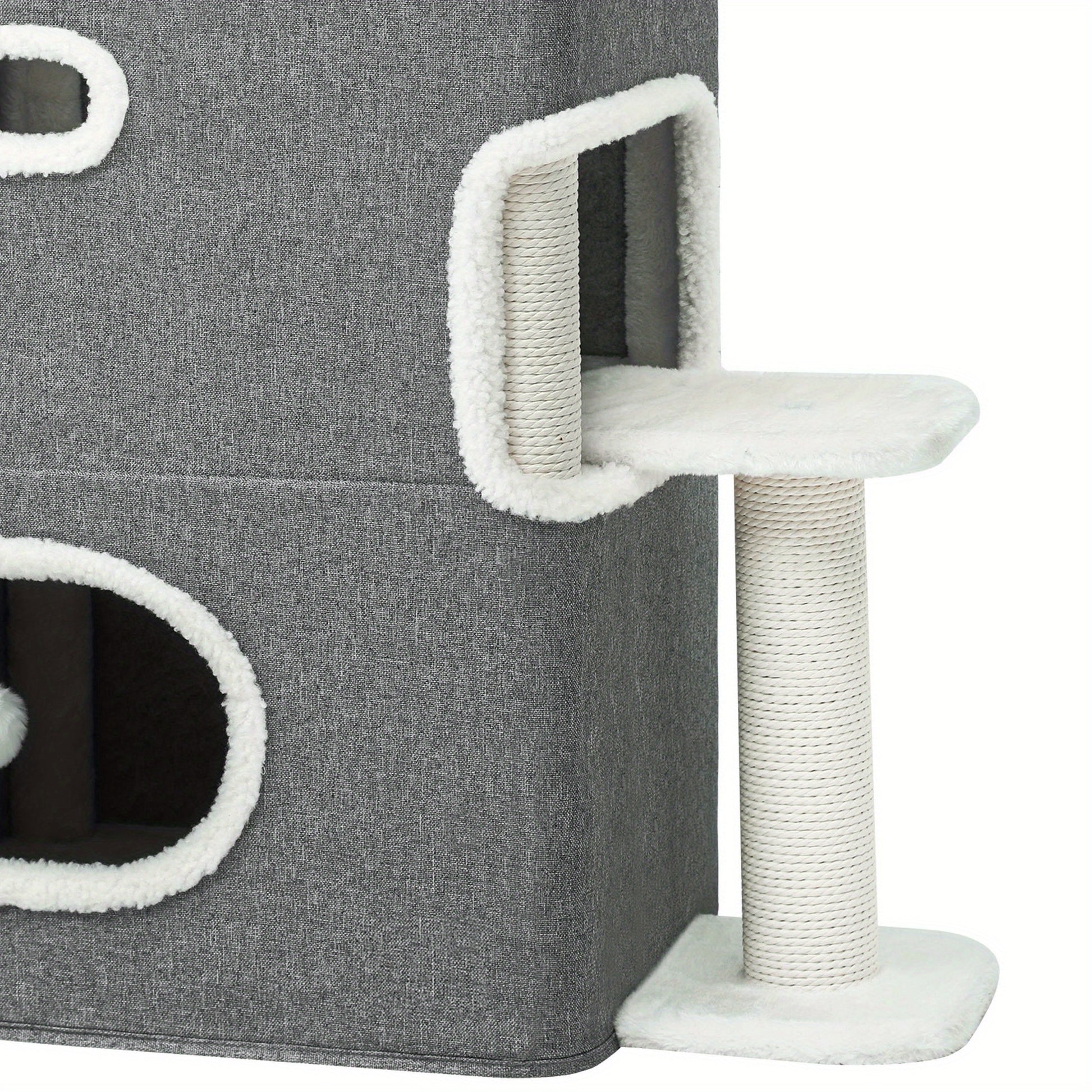 Cozy Double-Layer Cat House with Climbing Stand & Scratching Posts